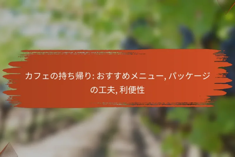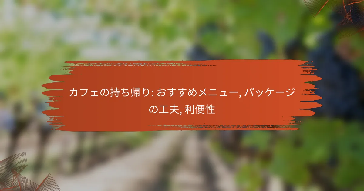 カフェの持ち帰りメニューは、忙しい日常の中で手軽に楽しめる美味しい選択肢が豊富です。特にサンドイッチやスイーツ、ドリンクは人気が高く、利便性を重視したパッケージが工夫されています。オンライン注文や柔軟な受け取り時間を活用することで、さらに便利に美味しい食事を楽しむことができます。 カフェの持ち帰りメニューのおすすめは何ですか? カフェの持ち帰りメニューには、手軽に楽しめる美味しい選択肢が豊富にあります。特に、サンドイッチやスイーツ、ドリンクは人気が高く、忙しい日常の中でも手軽に楽しむことができます。 人気の持ち帰りメニューの種類 持ち帰りで人気のメニューには、サンドイッチ、パスタ、スープ、そしてデザートが含まれます。特に、サンドイッチは具材のバリエーションが豊富で、軽食として最適です。 また、スイーツではケーキやマフィンが人気で、コーヒーとの相性も抜群です。これらのメニューは、持ち帰りでもその味わいを楽しむことができます。 季節ごとのおすすめメニュー 季節に応じた持ち帰りメニューは、旬の食材を使った料理が魅力です。春には桜の風味を取り入れたスイーツ、夏には冷たい飲み物やサラダが人気です。 秋には栗やかぼちゃを使ったメニュー、冬には温かいスープやホットドリンクが好まれます。季節感を楽しむことで、持ち帰りの楽しみが増します。 特別なダイエット向けメニュー ダイエット中の方には、低カロリーやグルテンフリーの持ち帰りメニューが選ばれています。サラダやヘルシーなスムージーは、栄養価が高く、満足感も得られます。 また、ビーガンやケトジェニックダイエット向けのオプションも増えており、選択肢が広がっています。事前にメニューを確認し、自分のニーズに合ったものを選ぶことが大切です。 地域ごとの人気メニュー 地域によって人気の持ち帰りメニューは異なります。例えば、都市部ではエスニック料理やヘルシーなボウルが人気ですが、地方では地元の特産品を使った料理が好まれます。 地域の特色を反映したメニューを選ぶことで、その土地ならではの味を楽しむことができます。地元のカフェを訪れる際は、地域限定メニューをチェックするのがおすすめです。 コーヒーとスイーツの組み合わせ … カフェの持ち帰り: おすすめメニュー, パッケージの工夫, 利便性Read more